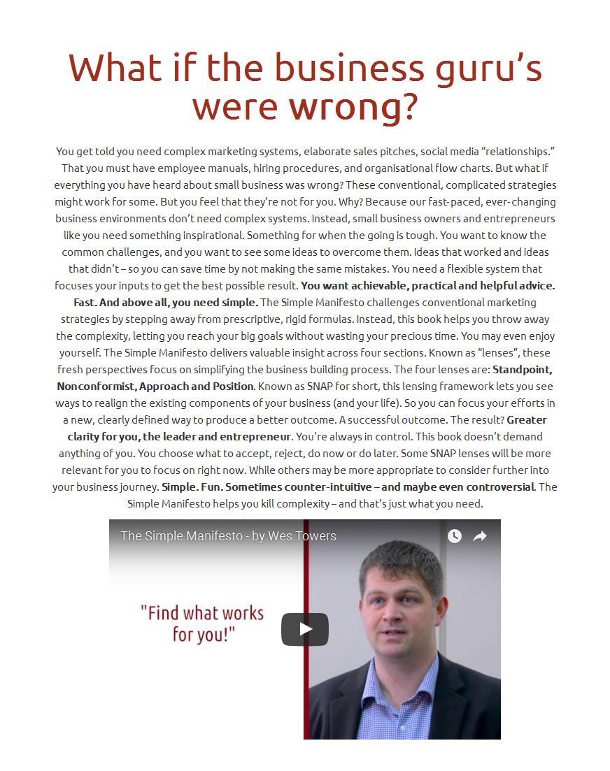 I worked with the client to identify the key elements of the book that would appeal to the core reader. We then translated these benefits into personal reasons to buy. And wrapped these points in phrasing that resonates with the ideal customer.